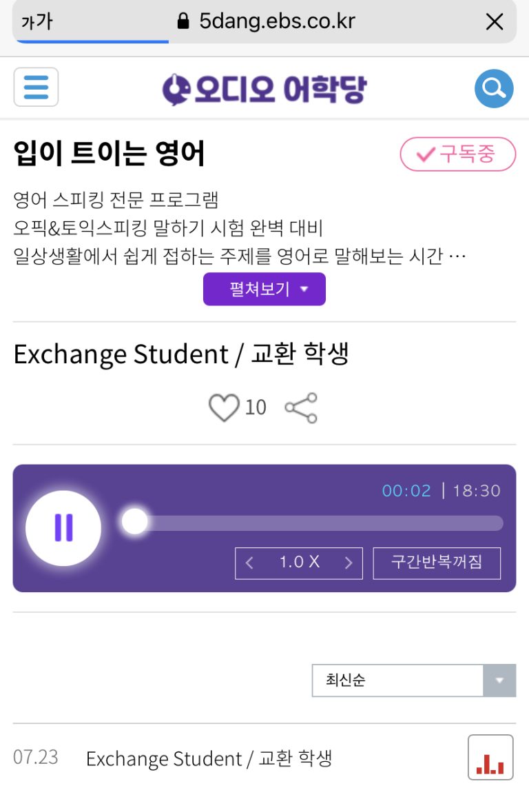 [2021.07.23.Fri] 입이 트이는 영어 Exchange Student 교환학생