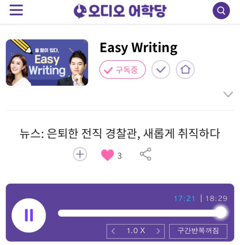 25.10.13.월 Easy Writing 뉴스: 은퇴한 전직 경찰관, 새롭게 취직하다 A Retired Former Police Officer Gets a Job