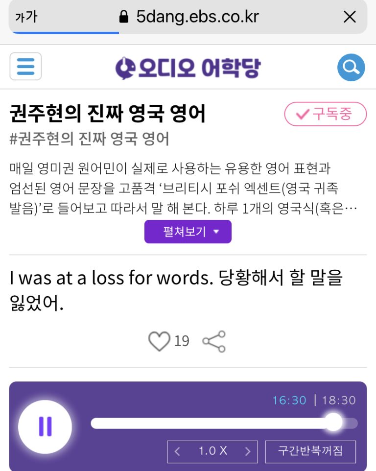21.04.06.화 I am at a loss for words. 당황해서 할 말을 잃었어. 권주현의 진짜 영국 영어