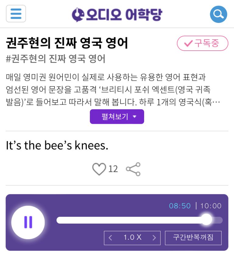 20.03.27.금 It’s the bee’s knees. 그건 최고예요. 권주현의 진짜 영국 영어