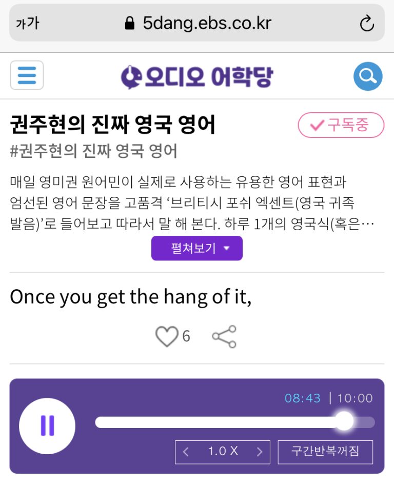 Welcome to 권주현의 진짜 영국 영어 on EBS radio.Today is Monday the 6th of March. Please don’t think about Monday blues because you’re going to study and listen to posh accent and speak out loud which is the easiest and fastest way to study English. 권주현의 진짜 영국 영어 monthly...