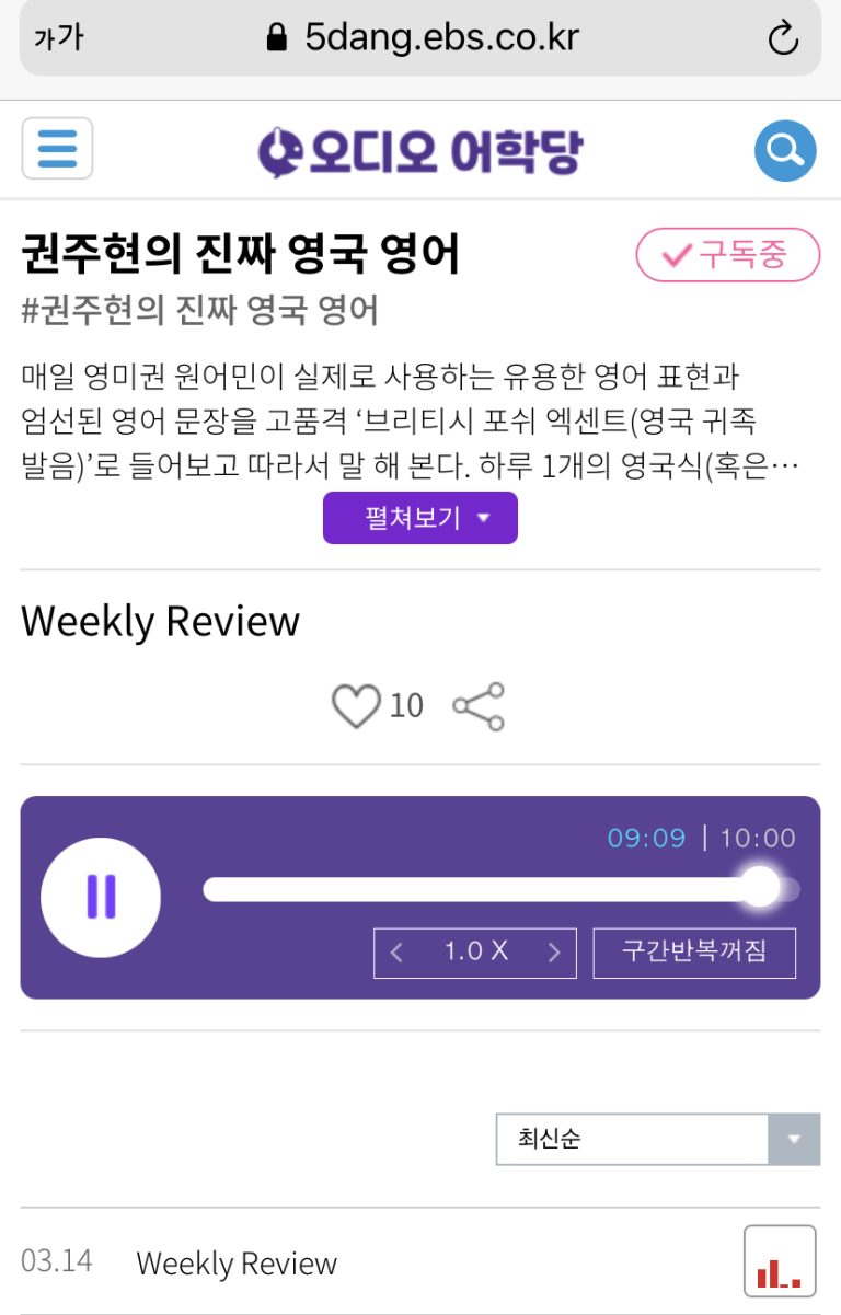 20.03.14.토 Weekly Review 03.09 ~ 03.13 권주현의 진짜 영국 영어