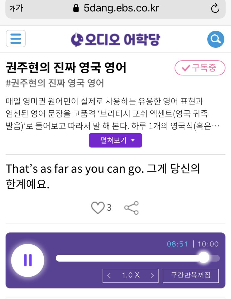 20.04.30.목 That’s as far as you can go. 그게 당신의 한계예요. 권주현의 진짜 영국 영어.